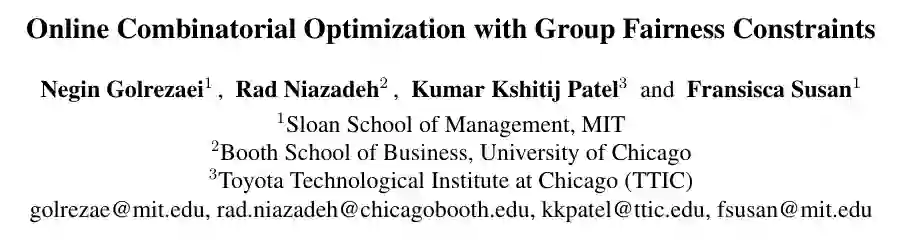 ** **论文1:《Online Combinatorial Optimization with Group Fairness Constraints》,于在线组合优化领域引入了群体公平性约束的新视角。