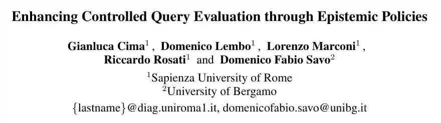 论文地址:https://www.ijcai.org/Proceedings/2024/0044.pdf 随着数字市场和服务的不断扩展,维护一个安全和公平的环境对于所有用户来说至关重要。这需要在这些平台的顺序决策过程中实施公平约束,以确保平等对待。然而,这可能具有挑战性,因为这些过程通常需要解决每个时间步长决策空间呈指数级增长的NP完全问题。为了解决这一问题,我们提出了一个将稳健性和公平性融入NP完全问题的通用框架,如优化产品排序和最大化子模函数。我们的框架将问题转化为一个原始玩家旨在最大化平台目标与负责群体公平约束的对偶玩家之间的最大-最小博弈。我们展示了通过改变公平约束的阈值,可以追踪整个帕累托公平曲线。我们为我们的方法提供了理论保证,并通过实验证明了其有效性。论文2:《Enhancing Controlled Query Evaluation Through Epistemic Policies》,提出了通过认识论策略提升控制查询评估的新方法。