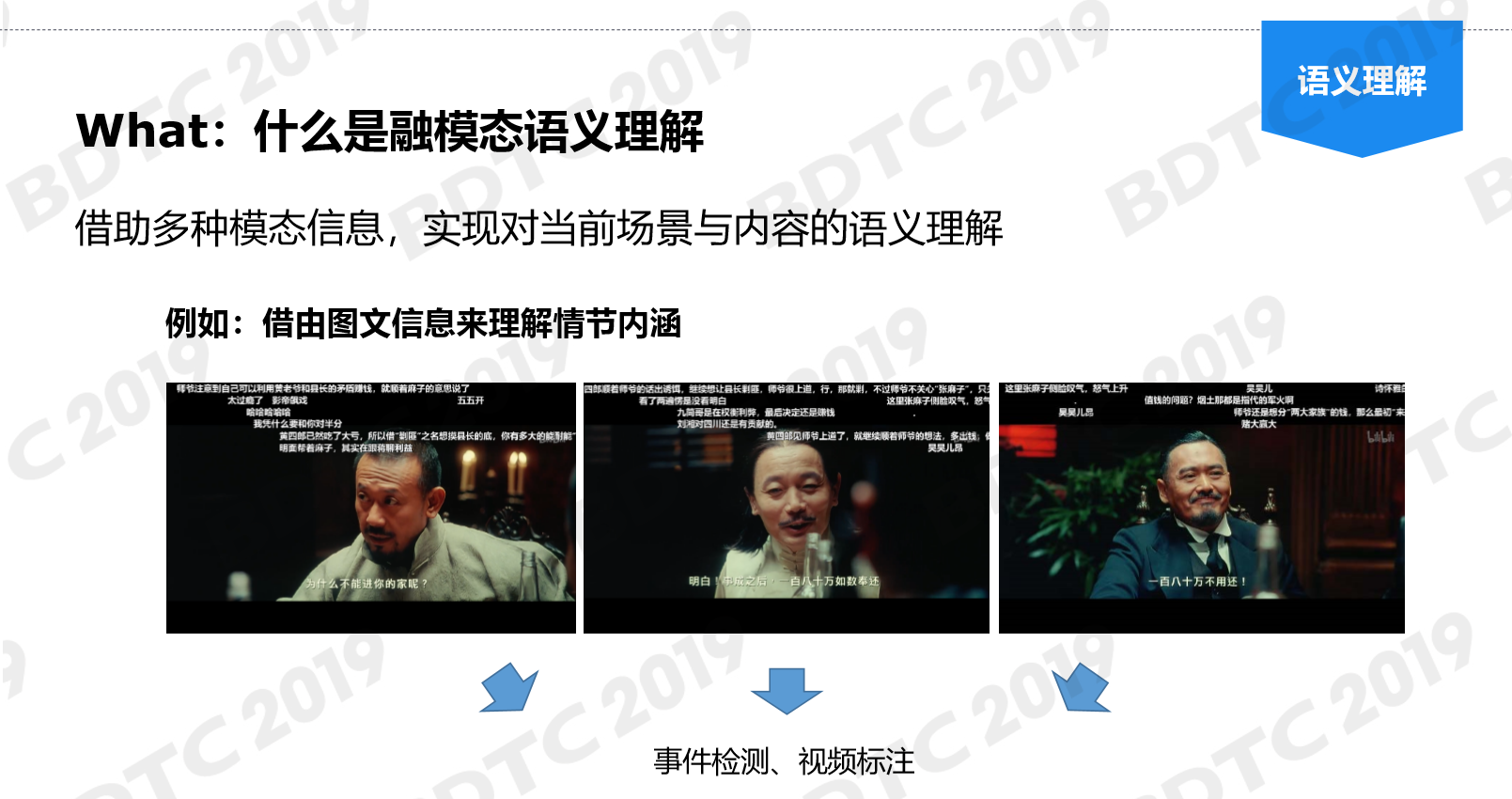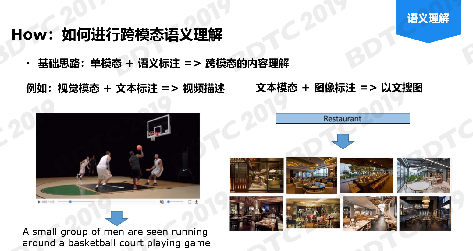 然而获取语义信息存在极大的挑战,从理论层面来说,机器不理解人的思维方式,这样会导致“语义鸿沟”的现象;数据层面,缺乏规范化标注语料,各模态信息难以解释与关联。因此本教程中提出通过融模态语义理解和多模态语义关联来加深层次语义理解。