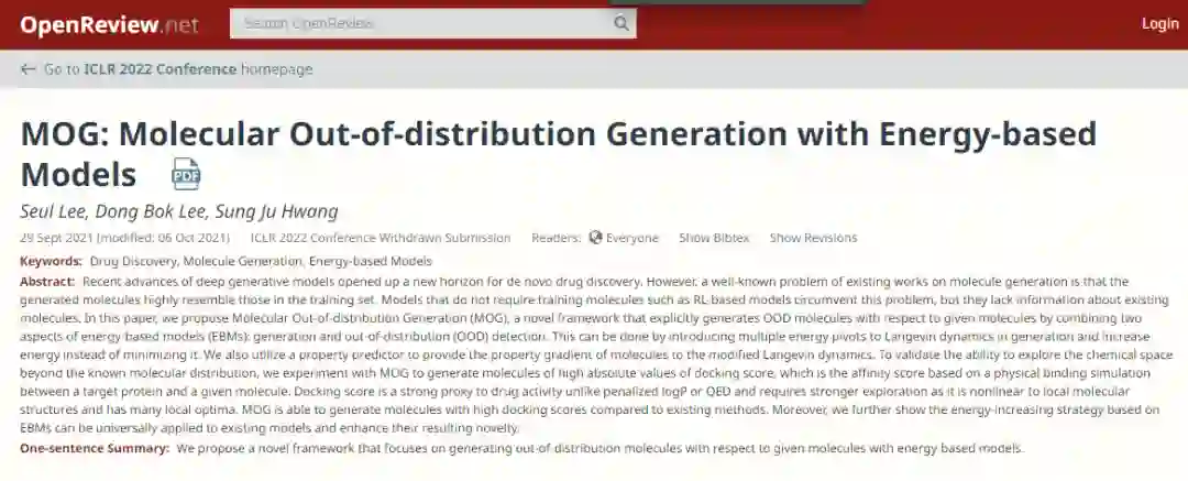 参考资料 Lee S, Lee D B, Hwang S J. MOG: Molecular Out-of-distribution Generation with Energy-based Models[J]. 2021.