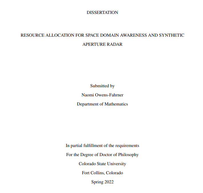 本文将讨论两个资源分配问题。每个问题的目标都是以最佳方式利用资源。将考虑太空域感知(SDA)传感器任务分配问题和合成孔径雷达(SAR)飞行路径规划问题。