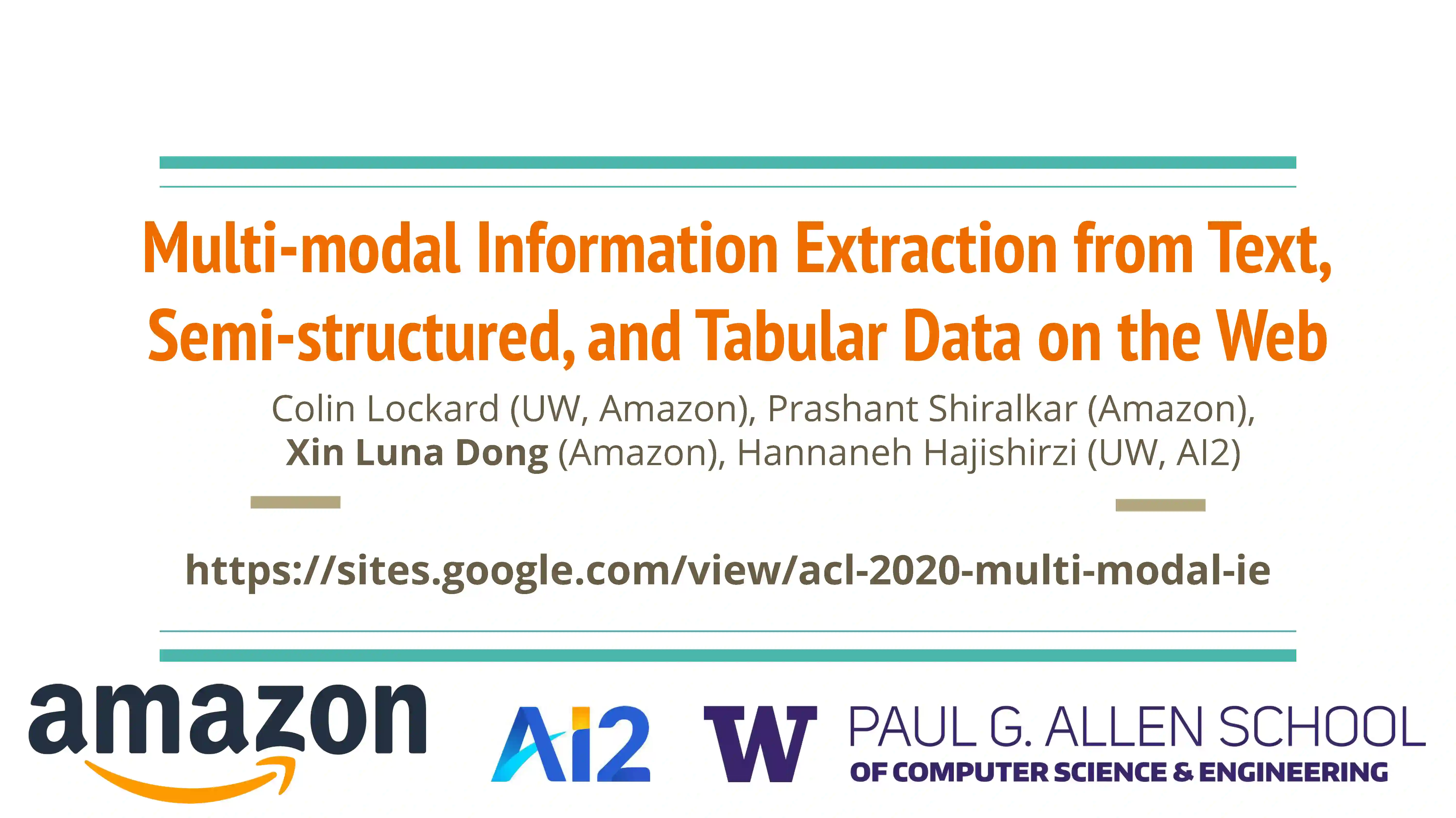 Organizers: Xin Luna Dong, Hannaneh Hajishirzi, Colin Lockard and Prashant Shiralkar