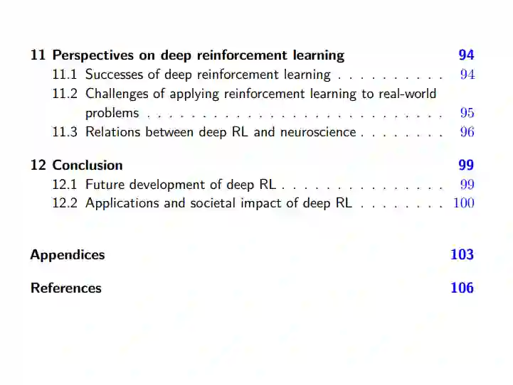 在使用深度RL进行游戏的几项值得注意的工作中,因在Atari游戏中从像素中获得超人级的玩家水平(Mnih等,2015)、掌握围棋(Silver等,2016a)或击败世界顶级的扑克游戏专家(Brown和Sandholm,2017;Moravčik等,2017)而脱颖而出。深度RL也有潜力应用于现实世界的应用,如机器人技术(Levine等,2016;Gandhi等,2017;Pinto等,2017)、自动驾驶汽车(You等,2017)、金融(Deng等,2017)和智能电网(François-Lavet,2017)等。