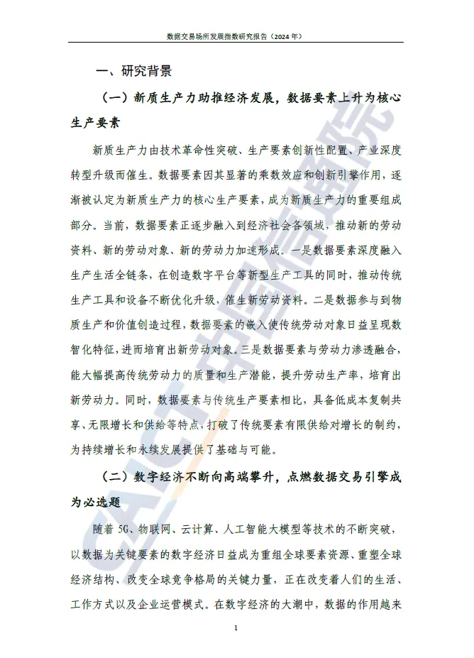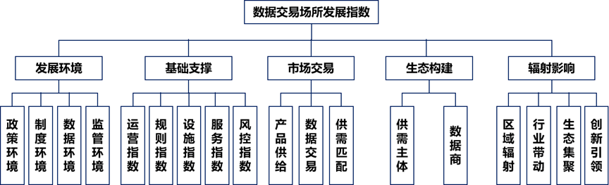 报告紧扣数据要素价值化主线,深入分析国内外数据交易场所发展现状和趋势,系统剖析我国数据交易场所发展面临的机遇和挑战,并在贵阳大数据交易所的大力支持下,遵循国家政策导向、实践导向、发展需求导向和问题导向,从构建规范高效的数据交易场所入手,围绕发展环境、基础支撑、市场交易、生态构建、辐射影响五个维度,研究建立了数据交易场所发展指数体系1.0,希望能为各级数据管理机构和产业界相关方推进数据交易高质量发展提供有价值的参考。报告中提到数据交易场所发展指数构建。发展指数共设置发展环境、基础支撑、市场交易、生态构建、辐射影响5个一级指标、18个二级指标、50余个三级指标。