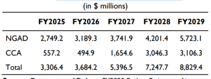 表 1. 2025 财政年度 NGAD 资金申请