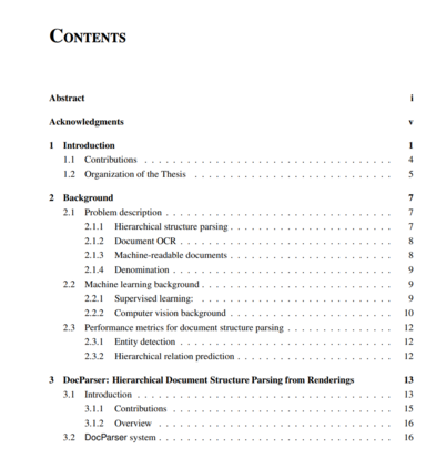 DocParser:一个端到端的系统,用于解析文档中的(i)实体(例如,图形、文本块、页眉)和(ii)捕获实体之间的序列和嵌套结构的关系。此外,我们提供了一个免费可访问的数据集,用于评估层次文档结构解析。最后,我们为域特定数据稀缺的设置提供了一个可扩展的学习框架。我们使用一种新的弱监督方法来解决这个问题,该方法显著提高了文档结构解析的性能。