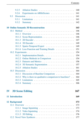 我们正处于一个新技术时代的边缘,技术无缝地融入我们的日常生活。进入这个勇敢的新世界需要始终在线的人工智能和增强现实的融合。然而,我们仍然需要克服许多挑战才能实现这一愿景。这篇论文解决了仍然存在的三个关键挑战:3D重建、3D场景理解和3D场景编辑。增强现实应用要求对世界进行重建,并不断用新信息更新。因此,我们首先解决了在在线系统中逐步融合噪声和异常数据的挑战。我们从数据驱动的角度出发,利用学习到的场景表示,通过机器学习的力量提高现有方法的效率。然而,仅有空间意识是不够的。因此,我们转向3D场景理解,我们面对为3D语义分割模型注释数据集的高成本挑战。我们引入了一个自动化的语义注释流程,达到人类注释质量,将最先进模型的预测统一到一个共享的标签空间中,并通过3D提升进一步改进。此外,我们将在线重建流程扩展到语义映射,通过一个时空注意力机制克服有限的接收字段问题,这个机制有效地结合了2D和3D以及过去的信息。在最后部分,我们探索了使用神经辐射场进行3D场景编辑。因此,我们提出了一种方法,利用在强大的2D修复方法中编码的先验知识来移除场景中的对象。这需要在优化阶段设计一个基于信心的视图选择机制,以确保最终重建中的多视图一致性。