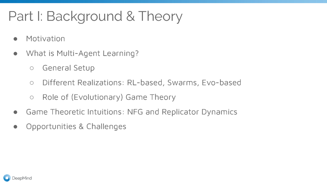 Karl Tuyls 教授是一名利物浦大学人工智能研究员和计算机科学教授,DeepMind(巴黎)的科学家。兴趣主要集中在理解智能并利用这些知识在多智能体环境中构建人工智能。其研究围绕着开发用于评估和训练智能体的博弈论技术,以及开发动态博弈论作为在合作和竞争多智能体环境中学习的基础。与此相关的是,还研究多机器人系统。