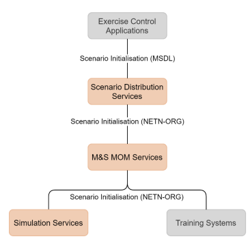场景分配服务。这些服务为模拟执行提供初始模拟场景(如作战顺序(ORBAT)数据),由场景开发应用程序开发。初始模拟场景包括关于单位、设备项目及其关系的信息,以及关于初始建模责任的信息。即哪些训练系统负责哪些单位和设备项目的建模和模拟。