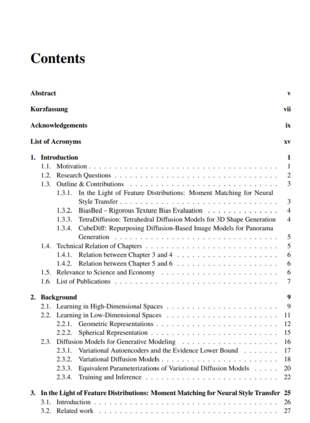 深度神经网络在学习丰富且结构化的潜在表征方面展现出强大能力,这推动了计算机视觉及更广泛领域的显著进展。它们在图像分类、语义分割、自然语言处理和生成建模等任务中均取得了卓越的成果。其表达能力的关键因素在于对海量数据的训练,使模型能够捕捉复杂模式并实现跨任务的泛化。然而,当数据稀缺或难以获取时,这种对大规模数据集的依赖便成为显著的限制。由此,一个自然的问题随之产生:如何在缺乏大规模配对数据的场景下,利用并适配那些在数据丰富领域中学到的表征?对此,通常有两类通用方法:其一是分析并变换潜在特征空间,使其与新的目标对齐;其二是直接适配和操作输入空间,以更好地契合模型已学习的先验。 本论文在表征学习与生成建模的语境下探讨了这两类策略。对于第一类方法,我们将神经网络中的编码信息视为结构化的特征分布,并通过数学上有根基的技术实现这些分布的对齐。在神经风格迁移的场景中,我们首先基于该思路提出了一种理论基础上的特征对齐方法。与现有方法相比,该方法能够实现更一致的风格迁移,并且具备理论保证。此外,我们还通过建立一个严谨的框架来识别和评估学习到的表征,加深了对潜在空间的理解,特别是在深度学习模型的纹理偏差问题上,对现有解决方案的有效性提出了部分质疑。 第二类方法则聚焦于适配数据表征本身,既包括对输入域的变换,也包括对模型架构的修改。这在传统架构难以处理的领域尤为重要,例如缺乏规则或高效网格结构的场景。在本论文中,我们重点研究了针对三维和非欧几里得数据的生成建模。为此,我们提出了一种基于扩散的生成模型,利用四面体表征实现高质量的三维形状合成,同时保持几何一致性。与现有方法相比,该方法能够在前所未有的分辨率下生成三维网格,并兼顾计算效率。最后,我们提出了一种方法,将现有扩散模型扩展至全景图像生成的任务,同时保留其互联网规模的图像先验。该模型不仅提升了图像质量,还实现了比已有工作更强的生成可控性。 总而言之,这些研究成果表明,通过理解并适配现有模型及表征,可以将深度学习拓展至新的输入与输出域。这些原则具有普适性,并能应用于广泛的计算机视觉任务。