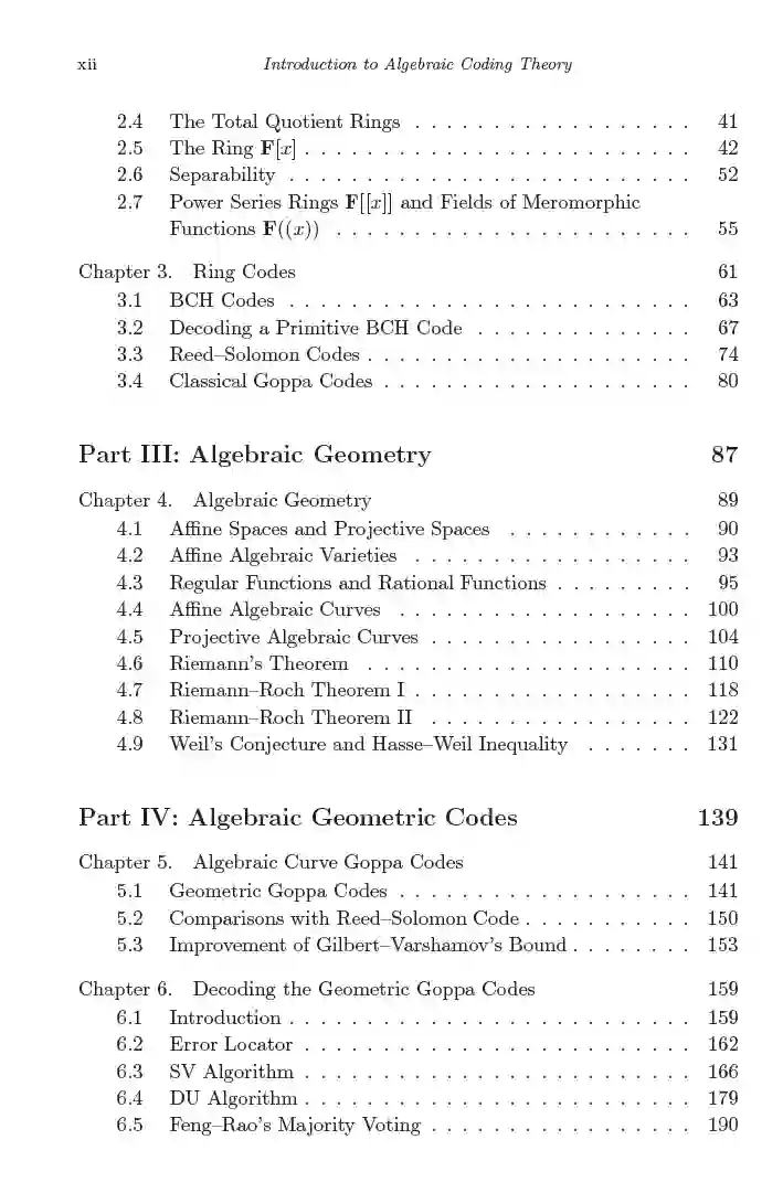 在这个技术时代,信息通过一串0和1的序列在空间中传输,由于嘈杂的信道,可能会发生错误。因此,当错误数量较少时,自校正编码对于消除这些错误至关重要。它广泛用于工业中,包括电子邮件、电话和远程感知(例如,火星照片等)等各种应用。代数和代数几何专家莫宗增在本书中涵盖了代数编码理论的许多重要方面,如基础代数编码理论、它们背后的向量空间和线性代数的数学理论、各种环及其相关编码理论、一种快速解码方法、代数几何和几何编码理论的有用部分。本书适用于高级本科生、研究生、编码理论研究者和代数几何学者。