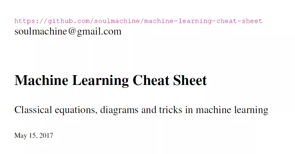本备忘单是机器学习手册的浓缩版,包含了许多关于机器学习的经典方程和图表,旨在帮助您快速回忆起机器学习中的知识和思想。