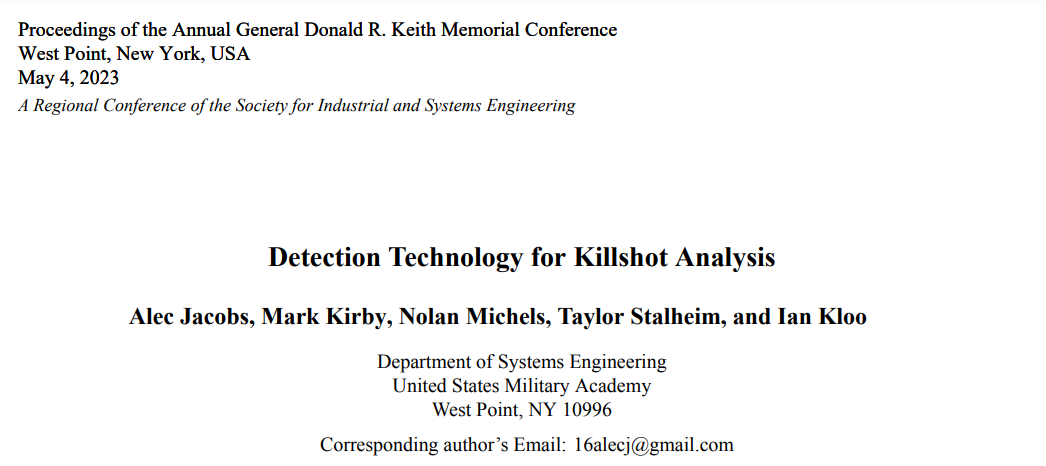 射击技术是特种作战训练的一个重要方面,但目前许多评估射击技术的方法都是基于过时的手工流程。在每次射击迭代之间,士兵必须走到各自的目标前分析他们的分组情况,并经常将结果记录在纸质笔记本上。这一过程不支持即时分析反馈或射击技术的长期分析,严重限制了教练的有效性和射手的评估。拟议的解决方案 "致命射击分析检测技术"(DTKA)可监测目标的射击情况,并将结果存储在远程数据库中。该研究成果旨在促进即时的射击反馈,并为特种作战领域的长期射击分析提供必要的数据。