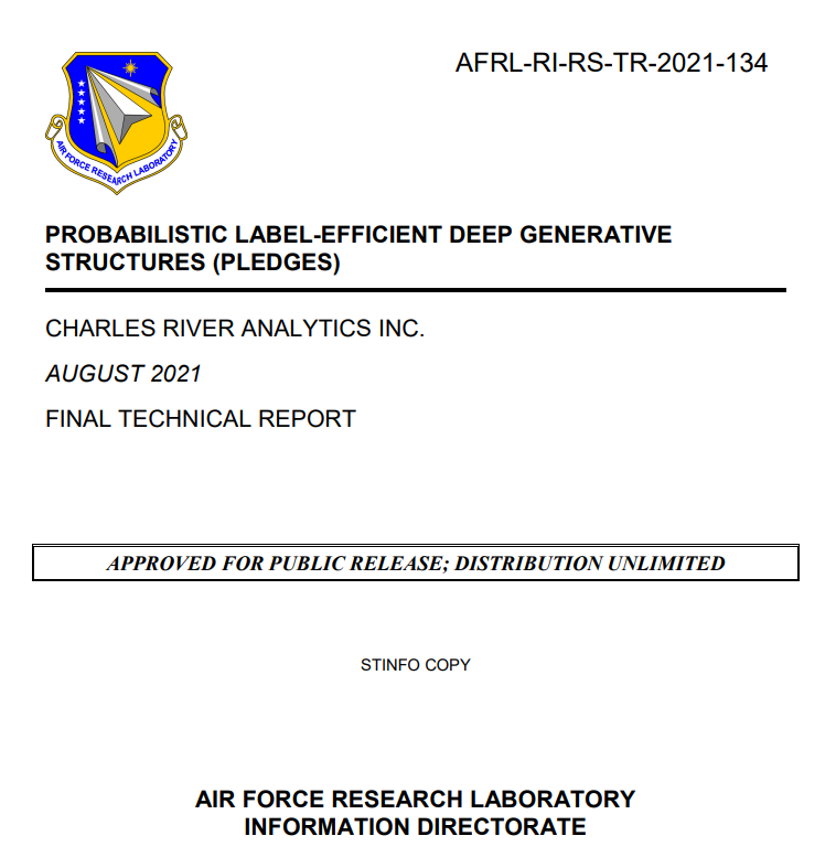 机器学习在商业领域的巨大成功未能转化为高性能的军事应用。尽管深度学习开始在一些特定的军事任务中显示出令人印象深刻的结果,但由于它们需要极其庞大的、有标签的训练集,目前的能力不能充分地发挥。军方需要一支由人工智能和机器学习专家组成的世界级团队,在标签高效半监督学习、模型转移和主动学习方面的进行必要创新,来解决实际的军事学习问题。为了满足这一需求,Charles River Analytics公司组建了一支由概率建模和机器学习相关领域的研究人员以及从业人员组成的优秀团队,提供概率标签高效的深度生成结构(PLEDGES)。