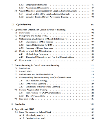 在过去几十年里,机器学习配合经验风险最小化已经展现了在学习和利用数据统计模式方面的巨大能力,甚至超越了人类。尽管取得了成功,但经验风险最小化避免了对因果性的建模——理解和处理变化的方式,这对人类智能来说是基本的。当模型部署到训练环境之外时,处处都是分布变化。例如,自动驾驶系统经常需要处理在训练期间未曾遇到的新天气条件;一个人工智能辅助的药物发现系统需要预测分子对于新型病毒如2019冠状病毒的生化特性。这使得分布外泛化问题对于传统机器学习来说充满挑战。 在这篇论文中,我们探讨如何在现代机器学习中的广泛任务中纳入和实现因果性。特别是,我们利用独立因果机制原则所暗示的不变性,即,产生效果的因果机制不会相互通报或影响。因此,目标变量给定其原因的条件分布在分布变化下是不变的。有了因果不变原则,我们首先将其实例化到图上——一种在许多真实世界工业和科学应用中无处不在的通用数据结构,如金融网络和分子。然后,我们进一步展示学习因果性如何有利于现代机器学习的许多理想特性,如(i)分布外泛化能力;(ii)可解释性;以及(iii)对抗性攻击的鲁棒性。 另一方面,实现机器学习中的因果性,对于传统机器学习中的优化提出了一个难题,因为它经常与经验风险最小化的目标相矛盾。因此,我们描述了这些矛盾如何影响特征学习和优化,并提出了新的表示学习和优化范式,适当处理优化难题。通过适当的目标和有效的因果不变学习实现方案,这篇论文搭建了迈向现代机器学习新基础的第一步。