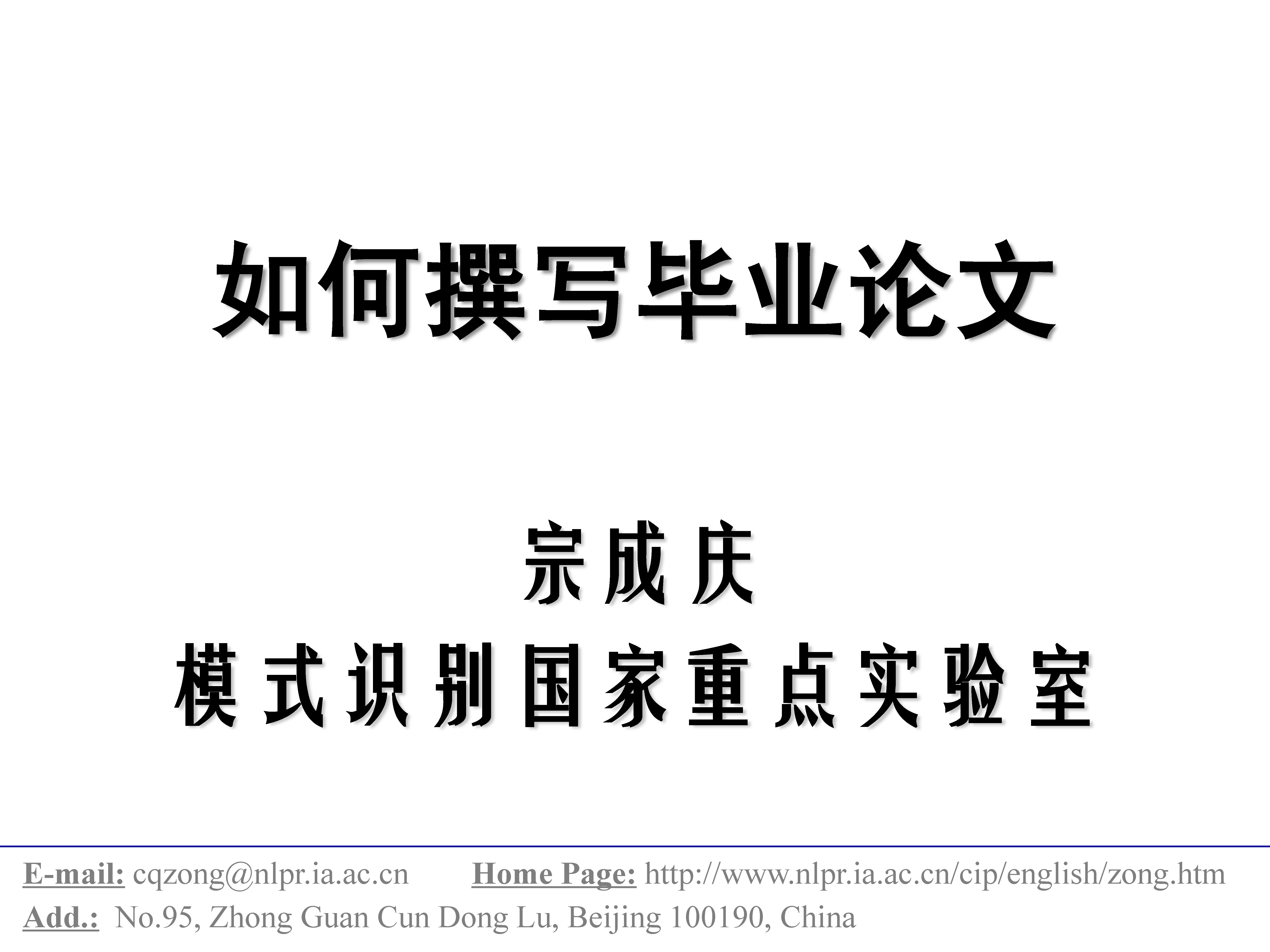 【导读】今年特别不一样,尤其是对于毕业季的同学。最近这段时间应该各位要毕业同学提交毕业论文评审的时间。如何让自己的论文顺利过关?是大家共同关心的。这里专知小编推荐一篇来自中国科学院自动化研究所模式识别国家重点实验室宗成庆老师的报告《如何撰写毕业论文》,27页ppt,讲述了毕业论文要注意的各种要点,非常值得我们学习,帮助大家写出更好的论文。