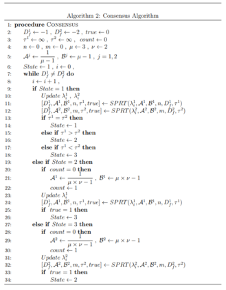 本文考虑了使用两个观测器从观测数据中检测马尔可夫模型和高斯模型的问题。考虑两个马尔可夫链和两个观察者。每个观察者观察真实未知马尔可夫链状态的不同函数。给定观察结果后,目标是找出两个马尔可夫链中哪一个产生了观察结果。本文为每个观察者提出了块二元假设检验问题,并证明每个观察者的决策是局部似然比的函数。本文提出了一种共识方案,让观察者就其信念达成一致,并证明了共识决策对真实假设的渐近收敛性。使用两个观测者检测高斯模型时,也考虑了类似的问题框架。为每个观测者提出了序列假设检验问题,并使用局部似然比求解。考虑到观察者随机和不对称的停止时间,提出了一种共识方案。本文引入了 “信息价值 ”的概念,以理解为达成共识而交换的信息的 “有用性”。