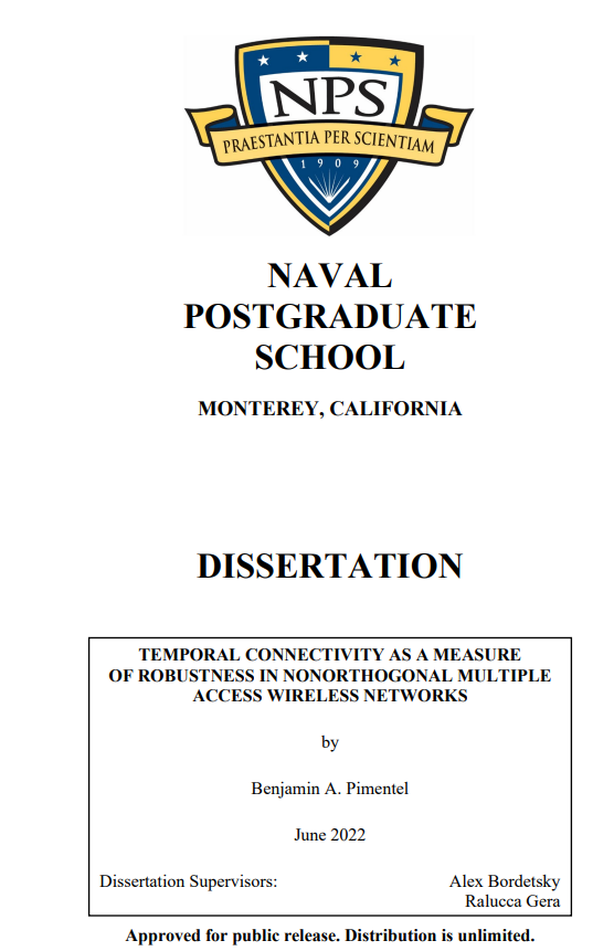非正交多址(NOMA)被认为是满足第五代(5G)和超越5G(B5G)无线网络性能要求的一项重要技术。通过超载技术,NOMA有可能支持更高的连接密度,提高频谱效率,以及比正交多址更低的延迟。NOMA在5G/B5G无线网络中的作用,需要清楚地了解过载的可变性如何影响网络的稳健性。本论文通过时间网络理论的视角来考虑可变过载和网络稳健性之间的关系,其中稳健性是通过网络设备(ND)之间的时间连接性的演变来衡量的。我们开发了一个NOMA时态图模型和随机时态组件框架,以描述作为NOMA超载函数的时变网络连接性。该分析被扩展到推导出单向连接、双向连接、单向连接之间的事件间时间以及所有NDD之间双向连接所需的最小时间的随机表达式和概率质量函数。我们通过数字模拟测试了我们分析结果的准确性。我们的结果提供了一个基于超载的时变网络鲁棒性的表征,可以推广到任何底层的NOMA实现。