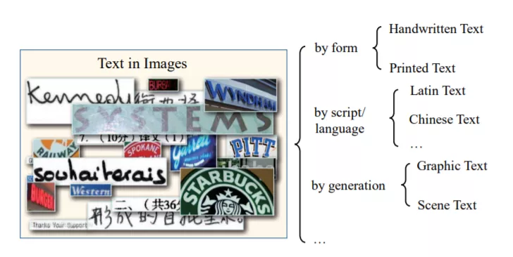 形式: 扫描文件的文本通常以单一颜色打印,字体规则,大小一致,排列整齐。在自然场景中,文本以多种颜色出现,字体不规则,大小不一,方向各异。文本的多样性使得STR在扫描文档中比OCR更加困难和具有挑战性。
