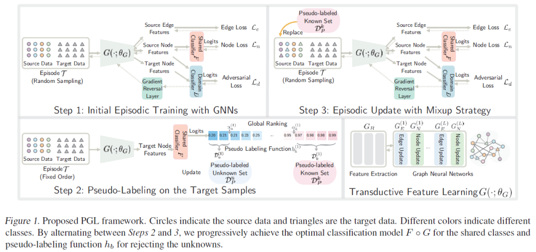 摘要:域偏移是计算机视觉识别中的一个基本问题,通常在源数据和目标数据遵循不同的分布时出现。现有的域适应方法都是在闭集环境下工作的,即假设源数据和目标数据共享完全相同的对象。在这篇论文中,我们解决了一个开放域在迁移时所面临的现实问题:目标域中所包含的一些样本类别在源域中并不存在。具体来说,本文提出了一种端到端的渐进式(PGL)学习框架,该框架集成了一个已训练过的图神经网络来抑制潜在的条件转移,并采用对抗性学习来缩小源域和目标域之间的分布差异。与目前的开放域自适应方法相比,我们的方法能够保证更加接近目标误差的上限。在三个公共基准数据集上的大量实验证明,我们的方法在开放域适应方面的性能明显优于目前的其他方法。