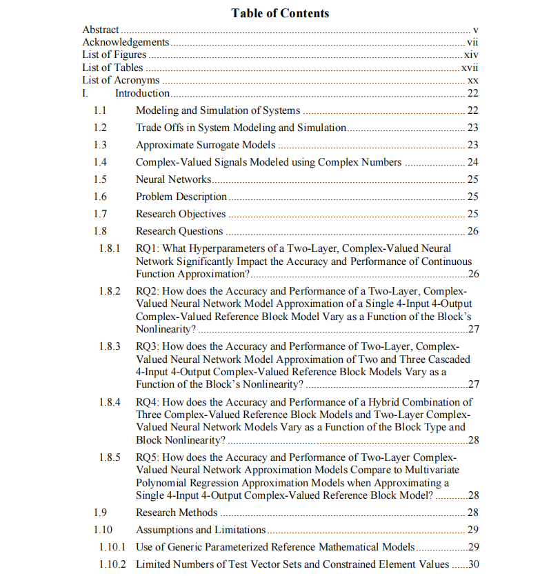 系统仿真模型通常被分解和抽象为相互连接的子系统块模型的集合,以促进系统的理解、设计和分析。每个子系统模块模型都包含接收、处理和传输信号的数学函数,这些信号在仿真中被建模为实数、复数和/或二进制逻辑值。本论文评估了使用两层复值神经网络模型来接近4输入4输出子系统参考块模型的准确性、性能和误差。