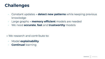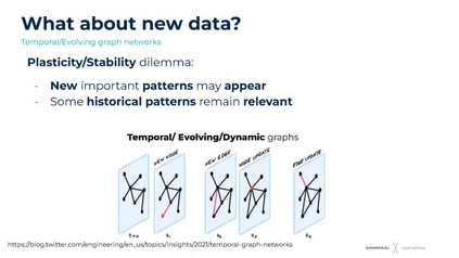 随着时间的推移,从汽车、制药到电子商务和银行,大型网络数据已经在大多数行业中无处不在。尽管最近做出了一些努力,但以有效和可扩展的方式在不断变化的数据上使用时间图神经网络仍然是一项挑战。本次演讲展示了euroanova的研究轨迹之一。我们提供了直接适用于实际用例的相关持续学习方法的概述。由于可解释性已成为值得信赖的AI的核心要素,我们引入了最先进的方法,用于解释节点、链接或图级预测。