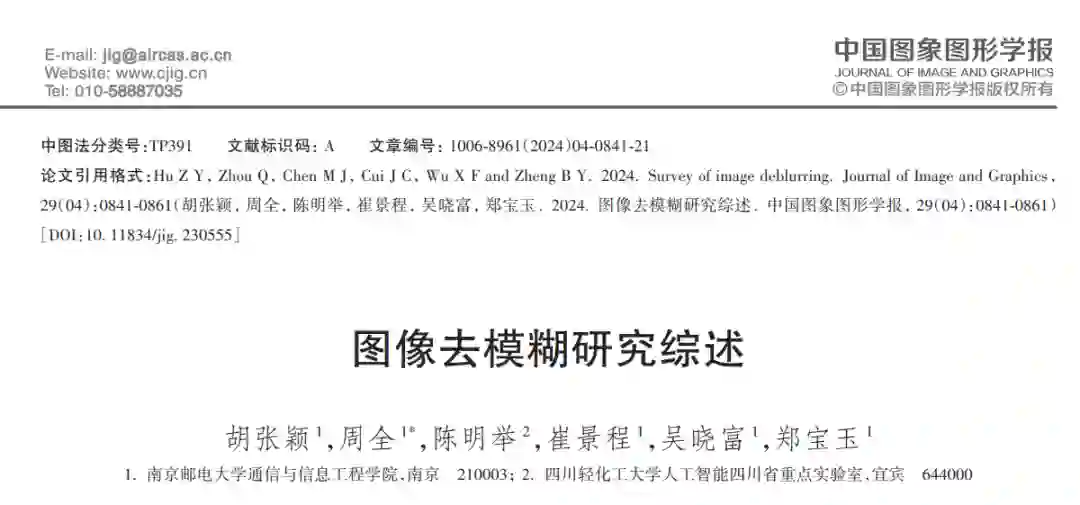 图像模糊是指在图像捕捉或传输过程中,由于镜头或相机运动、光照条件等因素导致图像失去清晰度和细 节,从而影响图像的质量和可用性。为了消除这种影响,图像去模糊技术应运而生。其目的在于通过构建计算机数 学模型来衡量图像的模糊信息,从而自动预测去模糊后的清晰图像。图像去模糊算法的研究发展不仅为计算机视 觉领域的其他任务提供了便利,同时也为生活领域提供了便捷和保障,如安全监控等。1)回顾了整个图像去模糊领 域的发展历程,对盲图像去模糊和非盲图像去模糊中具有影响力的算法进行论述和分析。2)讨论了图像模糊的常 见原因以及去模糊图像的质量评价方法。3)全面阐述了传统方法和基于深度学习方法的基本思想,并针对图像非 盲去模糊和图像盲去模糊两方面的一些文献进行了综述。其中,基于深度学习的方法包括基于卷积神经网络、基于 循环神经网络、基于生成式对抗网络和基于Transformer的方法等。4)简要介绍了图像去模糊领域的常用数据集并 比较分析了一些代表性图像去模糊算法的性能。5)探讨了图像去模糊领域所面临的挑战,并对未来的研究方法进 行了展望。