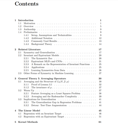 这项工作旨在理解不变性和等变性对监督学习中泛化的影响。我们利用平均算子的视角来展示,对于任何非等变的预测器,存在一个具有严格更低测试风险的等变预测器,适用于所有正确指定等变性的回归问题。这构成了一个严格的证明:对称性(以不变性或等变性的形式)是一种有用的归纳偏差。 我们将这些想法应用于随机设计最小二乘法和核岭回归中的等变性和不变性。这使我们能够在更具体的设置中指定预期测试风险的减少,并根据群体、模型和数据的属性来表达它。 在此过程中,我们给出了例子和额外的结果,以展示平均算子方法在分析等变预测器时的实用性。此外,我们采用了另一种视角,将使用不变模型进行学习的常见直觉形式化为关于轨道代表的问题。这种形式主义自然地扩展到对等变模型的类似直觉。我们通过连接这两种视角并提出未来工作的一些想法来结束。
