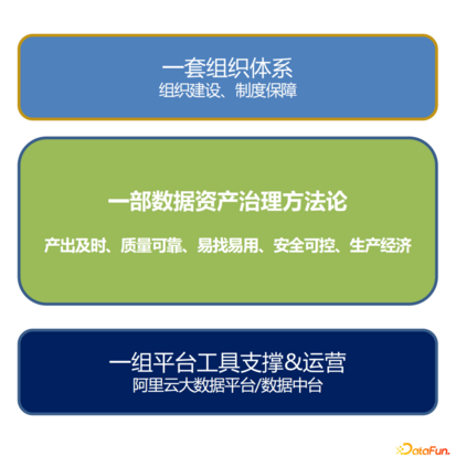 基于DT架构的思维模式,结合数据发展的阶段不同,阿里巴巴形成了一套自己的数据治理模式:
