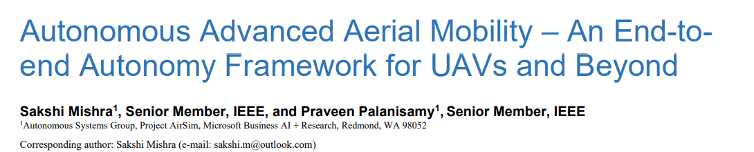 开发既能安全导航又能在无人干预的情况下执行指定任务的空中机器人--即乘客和货物的完全自主空中移动--是指导空中自主领域研究、设计和开发工作的更大愿景。然而,要同时实现所有类型的空中飞行器完全自主地共享空域是极具挑战性的。航空运输领域的完全自主包括几个方面,如为飞行器提供动力的技术设计、多智能体机队的运行以及符合航空领域严格安全要求的认证过程。因此,"自主先进空中机动性"仍然是一个模糊的术语,其对研究人员和专业人员的影响也不明确。为了填补这一空白,我们从一个全面的角度介绍了自主先进空中机动性这一新兴领域,其中涉及使用无人驾驶飞行器(UAV)和电动垂直起降(eVTOL)飞机进行各种应用,如城市空中交通、包裹递送和监视。文章提出了一个可扩展、可延伸的自主框架,由四个主要模块组成:感知、知觉、规划和控制。此外,文章还讨论了多智能体机队运营和管理方面的挑战和机遇,以及自主航空系统的测试、验证和认证方面的问题。最后,文章探讨了单体模型在航空自主方面的潜力,并分析了其优势和局限性。该视角旨在为先进的自主航空机动性领域及其未来发展方向提供一个整体图景。