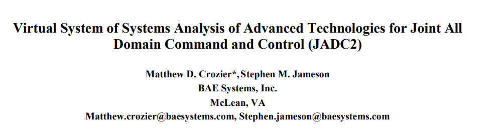 联合全域作战是美国(US)国防部(DoD)的联合作战概念,其目标是将所有军种和领域(空间、空中、海上、陆地、网络和电磁频谱)的能力统一起来,以更有效、高效和快速地应对先进技术威胁。JADO包括全域联合指挥与控制(JADC2)[1],它将使所有军种和所有级别的作战人员能够利用所有可用的信息 "感知、判断、行动"。为了实现这一愿景,来自各自领域的部队必须作为一个协同小组行动,获得相同的数据和协调其目标的能力。美国部队在有限的演习和具体的行动中显示出有能力协调各部门和各领域的行动以实现目标,但目前这些行动需要广泛的高级协调。未来的冲突将要求这种协调以 "速度和规模 "发生,即足够快的速度来应对快速出现或变化的威胁,并同时针对数百或数千的目标。