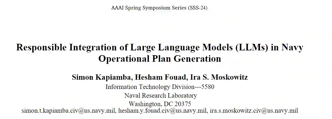 本研究概述了评估将大型语言模型纳入海军作战计划相关风险的综合方法。通过开发结构化风险评估框架并探索部署 LLM 的潜在益处和挑战,本研究旨在为在军事行动中负责任地、有效地使用人工智能技术做出贡献。未来的研究方向包括根据实证研究结果完善风险评估框架,探索大型语言模型在更广泛军事环境中的其他应用,以及制定在敏感作战环境中合乎道德地使用人工智能的指导方针。
