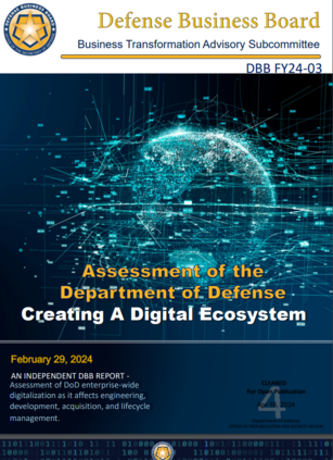 2023年7月31日,国防部副部长(DepSecDef)责成国防业务委员会(DBB或 “委员会”)通过其业务转型咨询小组委员会(“小组委员会”),评估生命周期数字化的需求,并就与行业合作伙伴创建数字生态系统提出建议。生命周期数字化是指在整个产品生命周期(需求、工程、采购和维护)中整合数字技术、数据和系统。这一过程涉及将协作数据平台、人工智能(AI)、预测分析、数字双胞胎、先进制造、全面生命周期管理和自动化等创新技术融入并结合起来。