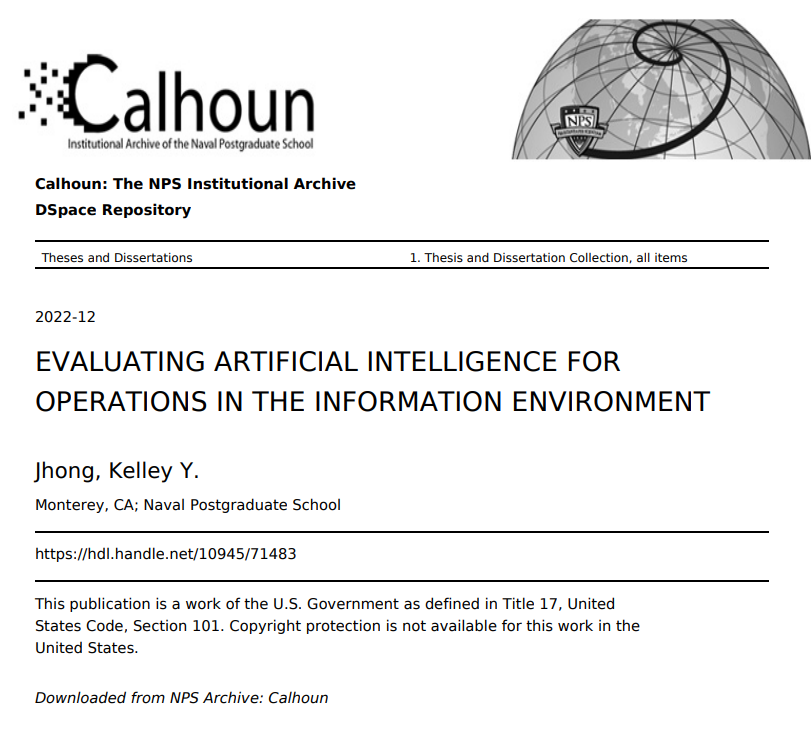 本论文包括六个主要部分(第二章至第七章)。第二章建立了基础,首先解释了人工智能和OIE的关键概念和定义。该章还讨论了从业者在计划、执行和评估OIE时面临的挑战,并确定了可以解决其中一些挑战的人工智能技术。第三章阐述了信任在人机协作中的关键作用,它影响了人工智能在军事行动中的有效使用。第四章深入研究了技术接受和采用理论,以确定影响OIE单位内人工智能技术采用性的重要因素。第五章评估了现有的框架,这些框架有助于提高人工智能系统的透明度,并可由SOF利用这些框架来评估技术。进行了定性分析,以确定通过开源研究发现的50个模型卡的共同主题。第四章和第五章的发现被用来建立第六章提出的从业人员评价框架(PEF)。在第七章中,该框架被用来评估Pulse--一个目前被OIE单位采用的人工智能工具。第八章最后提出了对未来研究的总体建议和意见。