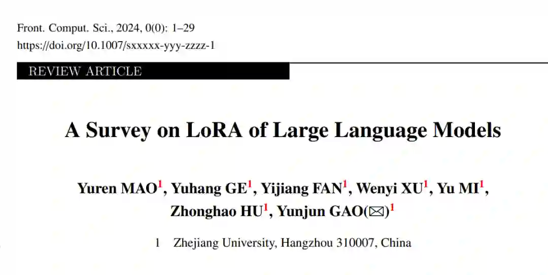 低秩适应(Low-Rank Adaptation,LoRA)通过可插拔的低秩矩阵更新密集神经网络层,是当前参数高效微调范式中表现最佳的方法之一。此外,它在跨任务泛化和隐私保护方面具有显著优势。因此,LoRA 最近受到了广泛关注,相关文献的数量呈指数增长。对LoRA的当前进展进行全面综述是必要的。本综述从以下几个方面分类并回顾了LoRA的进展:(1)改进LoRA在下游任务性能的变体;(2)通过混合多种LoRA插件实现跨任务泛化的方法;(3)提高LoRA计算效率的方法;(4)在联邦学习中使用LoRA的数据隐私保护方法;(5)应用。此外,本综述还讨论了该领域的未来研究方向。 预训练语言模型参数规模的迅速增加提升了它们的泛化能力,并带来了新的能力。近年来,预训练语言模型的参数规模增加了数千倍(例如,从具有3.3亿参数的BERT[1]到具有5400亿参数的PaLM[2])。这些具有大参数规模的预训练语言模型被称为大语言模型(LLMs)。然而,由于LLMs的知识边界,它们在某些下游任务中的能力仍然有限。为了扩展知识边界,仍然有必要在下游任务上微调LLMs。