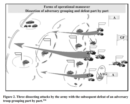 俄罗斯总参谋长瓦列里-格拉西莫夫(Valery Gerasimov)不断要求军事科学院向他提供有关新的战争形式和方法的想法。一份资料将 "方法 "定义为武器装备和军事艺术的使用。现在的武器装备先进,具有新的速度、射程和灵活性,为俄罗斯指挥官使用武力提供了新的方法。军事艺术在考虑先进武器对冲突的贡献的同时,还结合了新旧作战经验、指挥官的创造力和创新能力,以及考虑或补充军事艺术原则(大规模、出其不意等)的新方法。