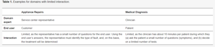 如前所述,上述两个领域包含了一个两方面的有限互动。这种限制可以用时间、问题的数量等来表示。请注意,医疗和家电维修这两个领域都是宽泛的领域,可以被专门化为特定的子领域。例如,家电维修领域可以被专业化为建筑服务、互联网服务、家庭故障服务等。医疗领域也是如此。它也可以包含一些子域,如各领域的医疗咨询(如心理学)、紧急医疗电话的处理等。