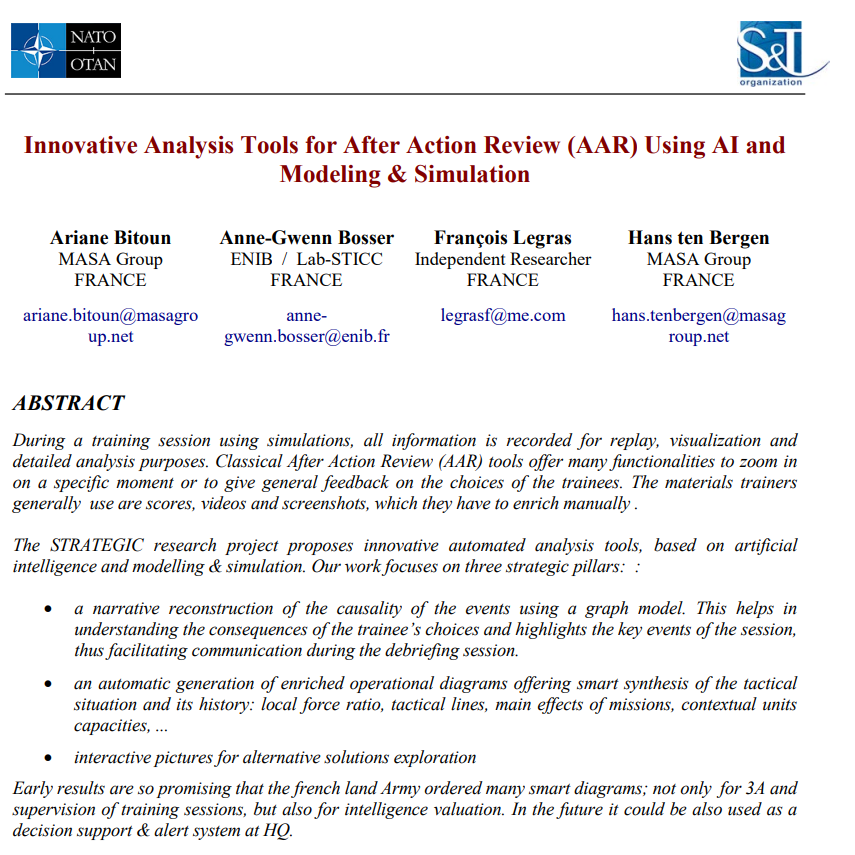 STRATEGIC研究项目提出了基于人工智能和建模与仿真的创新自动化分析工具。我们的工作侧重于三个战略支柱: