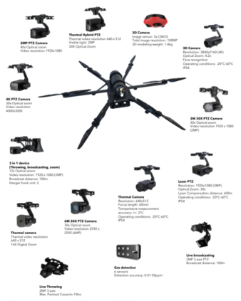 "为安静的长续航时间(LE)多旋翼飞行、可靠性和高性能而设计",这种飞行器可能的军事应用包括C5ISR或搜索和救援(SAR)任务,与有人驾驶的飞机行动一起或代替有人驾驶的飞机[7]。所宣传的2.5公斤的有效载荷能力限制了将该平台用于战斗行动或营救受伤或被困人员的可能性[7]。