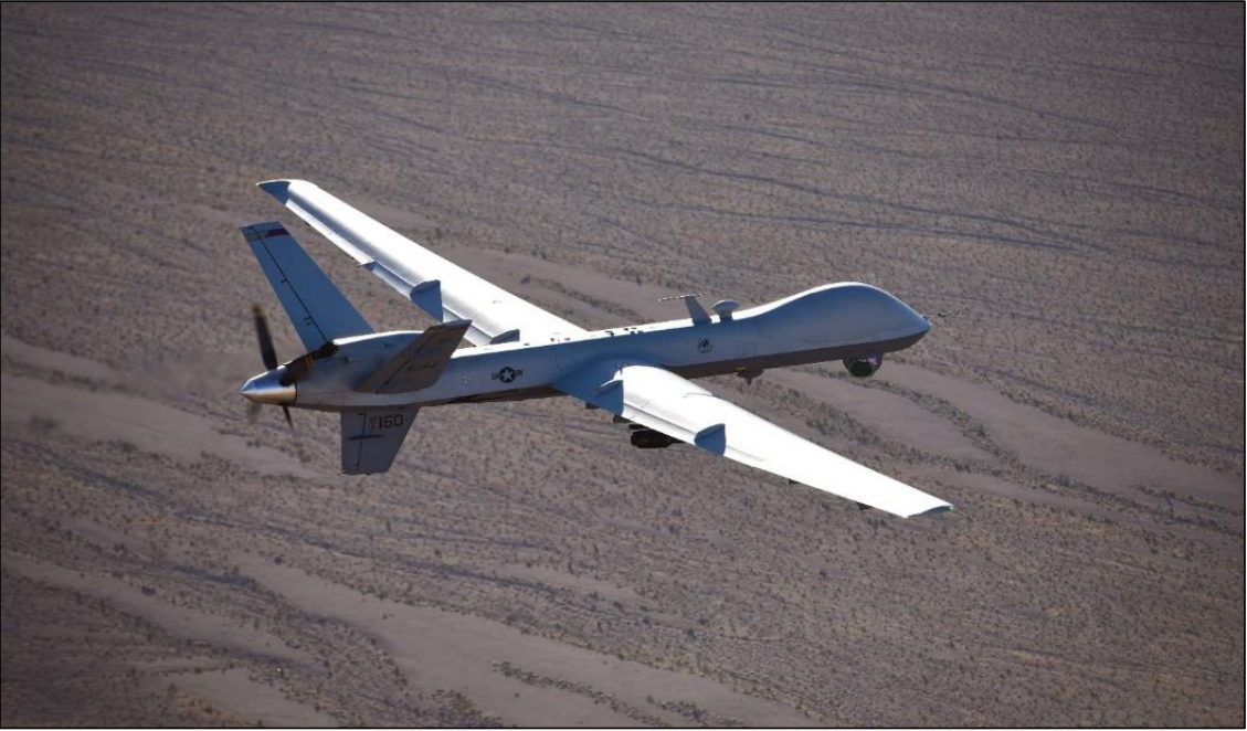 MQ-1C“灰鹰”(图1)是MQ-1 "捕食者 "的陆军衍生产品。根据陆军的说法,MQ-1C“灰鹰”为作战人员提供了专用的、有保障的、多任务的无人机系统能力,涵盖所有10个陆军师,以支持指挥官的作战行动和陆军特种部队及情报和安全指挥部。 陆军表示,MQ1C灰鹰能够以150节的最大速度在25,000英尺的高度飞行至少27小时。它可以携带四枚地狱火导弹,以及光电传感器、合成孔径雷达和通信中继器。根据2021财年选定的采购报告,陆军的MQ-1C“灰鹰”在2019财年飞行了超过494,000小时,实现了92%的战斗行动可用性。