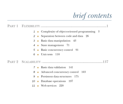 面向数据的编程教你使用开创性的面向数据的范式设计软件。您将使用DOP来为业务实体设计数据模型,并实现一个库管理系统,该系统可以在没有数据突变的情况下管理状态。大量的图表,直观的思维导图,以及独特的对话方法都能帮助你的头脑理解这些令人兴奋的新想法。每一章都有一个灵光一闪的时刻,它将改变你对编程的看法。