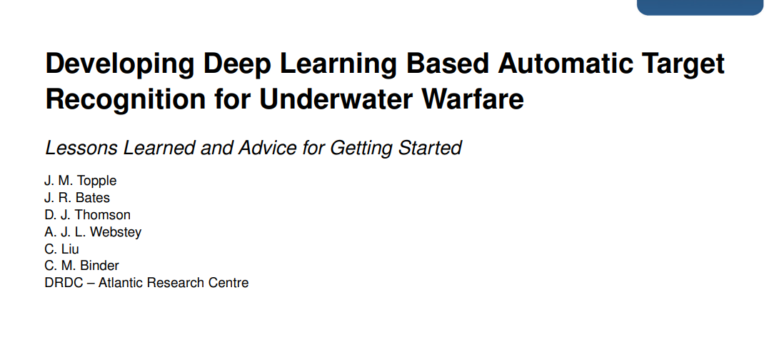 深度学习是人工智能的一个子类别,在自动识别水下传感器数据中的各种目标方面具有巨大潜力。这项工作的目标是支持未来使用深度学习的水下战争领域目标自动识别系统的发展,首先要展示什么是可能的,其次要让研究人员深入了解如何通过建议和经验教训来构建这种定制系统。目标受众是水下战争领域的研究人员,他们或是深度学习的新手,或是水下传感器数据的新手。深度学习的基础知识可以从许多在线课程中获得。本参考文档重点介绍如何应用这些工具识别目标,该领域不同于机器视觉和自然语言处理的常规应用。这些水下战争自动目标识别系统处理的不是标准图像或文本,而是来自声学传感器的数据。这些小型定制神经网络不是下载标准的现成网络,利用充足的计算资源从大型训练数据集中学习,而是设计用于从相对较小的训练数据集中学习,而且往往受到硬件的计算限制。这项工作概述了定制神经网络在各种水下战争自动目标识别任务中的应用,包括侧视声纳中的类雷物体、宽带声纳散射数据中的未爆弹药、被动声学数据中的水面舰艇以及主动声纳中的水下目标。此外,还分享了关于高效神经网络设计和使用来自水下传感器的小型训练数据集的建议。