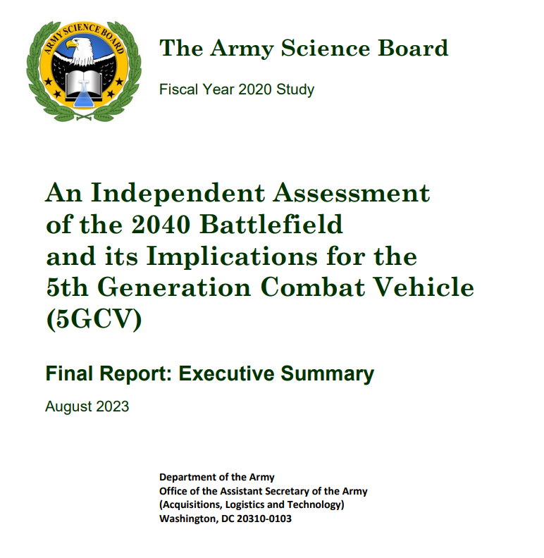 美陆军部长马克·埃斯珀(Mark Esper)和瑞安·麦卡锡(Ryan McCarthy)分别于2019年1月4日和2020年1月6日委托陆军科学委员会(ASB)研究2040年左右的装甲/反装甲战争。2021年8月14日,陆军科学委员会重新成立时,陆军部长克里斯汀·沃穆思(Christine Wormuth)重申了对未来装甲/反装甲战争进行独立评估的必要性。陆军未来司令部(AFC)赞助了这项研究。在研究进行期间,陆军未来司令部司令约翰·M·默里(John M. Murray)将军和詹姆斯·E·雷尼(James E. Rainey)将军指导了这项工作。