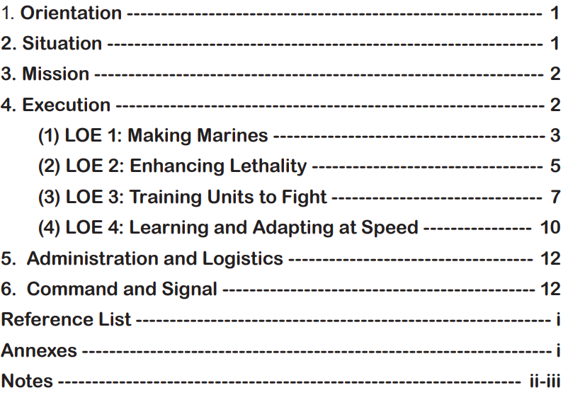 美海军陆战队在战备过程中,既从历史中汲取灵感,也日益从不断演变的战争特性以及乌克兰和中东等地的当代冲突教训中获取信息。作为一支军种,始终立足于海军陆战队空地特遣部队(MAGTF)联合作战以及载入《海军陆战队条令出版物-1:作战》中的作战原则,同时拓展部队编成、训练及战术、技术与程序(TTPs),以支持联合行动,并侧重于海上濒海区域作战。监视能力和远程火力的快速扩散、受对抗后勤及遭拒止与降级指挥控制所带来的挑战,以及人工智能(AI)和机器学习(ML)的成熟,都增加了现代全域战场的复杂性、流动性和不确定性。无人航空系统(UAS)和巡飞弹数量庞大、易于获取,预示着我们不再能持续享有制空权的时代即将来临。正值海军陆战队处于“部队设计”可能最困难的阶段——实施阶段——训练与教育司令部(TECOM)必须迅速开发并运用解决方案,以转型训练与教育(T&E),从而在学习并列装新能力的过程中,保持同步满足新需求,并在联合部队框架内提升舰队海军陆战队部队(FMF)的杀伤力。