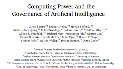 计算力(或称 "计算")对于开发和部署人工智能(AI)能力至关重要。因此,政府和公司开始利用计算作为管理人工智能的手段。例如,政府正在投资国内计算能力,控制计算向竞争国家的流动,并对某些行业的计算访问提供补贴。然而,这些工作只是从表面上了解了如何利用计算来管理人工智能的开发和部署。与人工智能的其他关键投入(数据和算法)相比,人工智能相关计算是一个特别有效的干预点:它是可检测、可排除、可量化的,并且是通过极其集中的供应链生产出来的。这些特点,加上计算对尖端人工智能模型的独特重要性,表明对计算的管理有助于实现共同的政策目标,如确保人工智能的安全和有益使用。更确切地说,政策制定者可以利用计算促进人工智能的监管可见性,分配资源以促进有益的结果,并对不负责任或恶意的人工智能开发和使用实施限制。然而,虽然基于计算的政策和技术有可能在这些领域提供帮助,但其实施的准备程度却存在很大差异。一些想法目前正在试行,而另一些则因需要进行基础研究而受到阻碍。此外,在隐私、经济影响和权力集中等领域,朴素或范围不清的计算治理方法会带来巨大风险。最后,我们将提出一些建议,以最大限度地降低计算治理的这些风险。