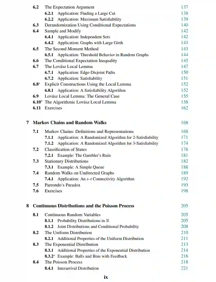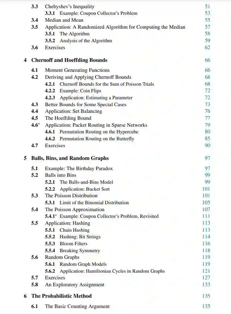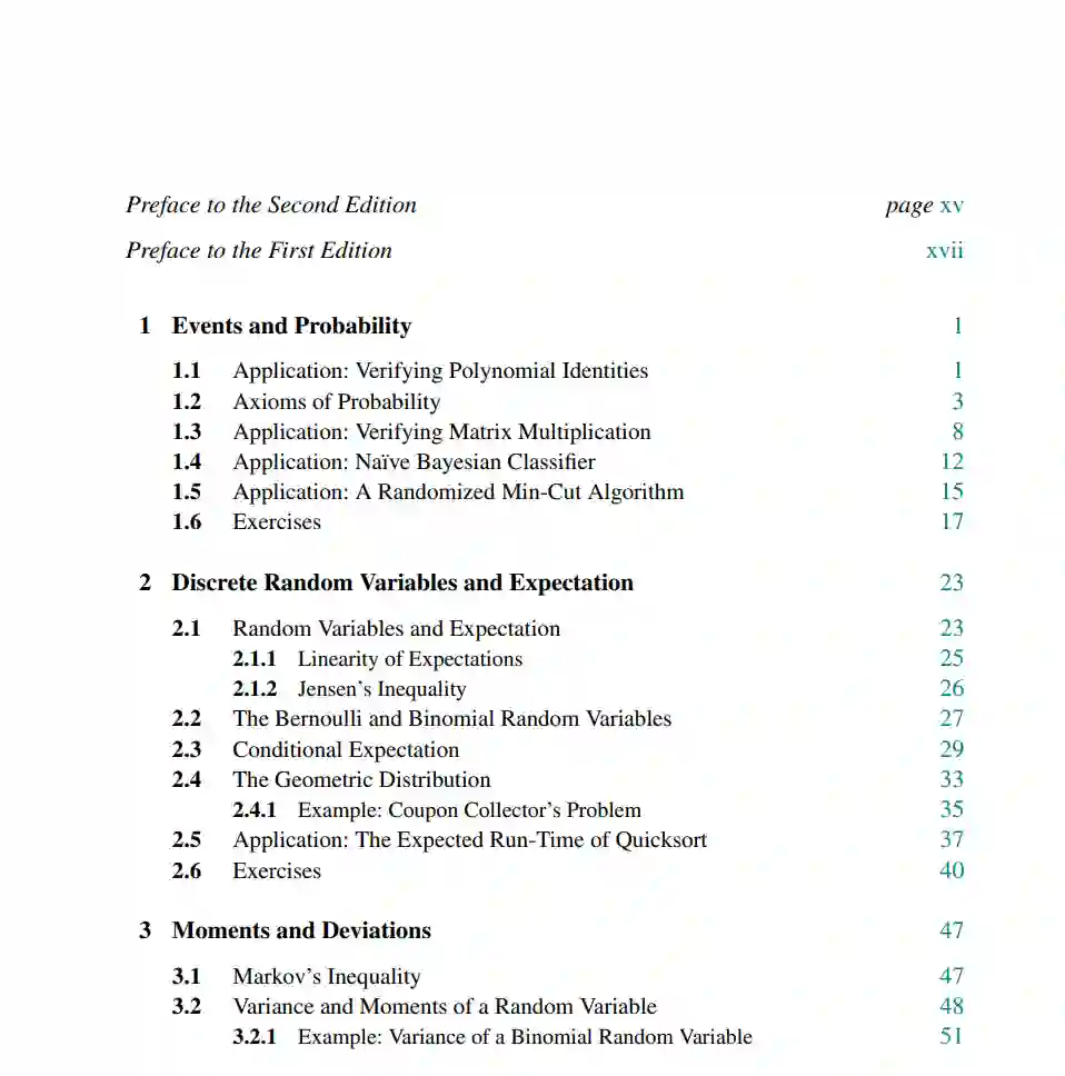 概率与计算:算法和数据分析中的随机化和概率性技术 本版大幅扩充,仅需要离散数学的基础知识即可,为现代计算机科学中随机化和概率性技术的作用提供了全面的介绍。新增章节和部分涵盖了正态分布、样本复杂性、VC维度、Rademacher复杂性、幂律及相关分布、布谷鸟哈希(Cuckoo Hashing)以及Lovasz局部引理等主题。与机器学习和大数据分析相关的材料使学生能够学习现代技术和应用。其中众多的新练习和示例包括与编程相关的练习,为学生解决相关问题提供了极佳的培训。本书为计算机科学和应用数学高级本科生一学期或两学期课程提供了不可或缺的教学工具。 内容 第1章 事件与概率 第2章 离散随机变量与期望值 第3章 矩与偏差 第4章 Chernoff界与Hoeffding界 第5章 球、箱与随机图 第6章 概率性方法 第7章 马尔可夫链与随机游走 第8章 连续分布与泊松过程 第9章 正态分布 第10章 熵、随机性与信息 第11章 蒙特卡洛方法 第12章 马尔可夫链的耦合 第13章 鞅(Martingales) 第14章 样本复杂性、VC维度与Rademacher复杂性 第15章 两两独立与通用哈希函数 第16章 幂律与相关分布 第17章 平衡分配与布谷鸟哈希