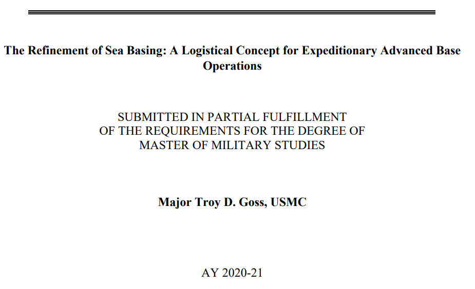 在部署和开展分布式海上作战时,速度至关重要。美海军陆战队新提出的远征先进基地行动(EABO)概念需要可扩展的部队来建立和移动 EAB 的位置,以利用对手的弱点。此外,为使多个 EAB 支持作战行动,需要修订后勤概念,以满足持续性和机动性的要求。这种修订后的概念将允许多个远征基地同时存在,并有能力迅速将它们机动到具备打击敌人能力的重要地理位置。在进行分布式海上作战时,由于缺乏机动性、灵活性、杀伤力以及对反舰导弹和水雷等反介入/区域拒止(A2/AD)系统的防护,军方一直使用的传统后勤流程将不足以支持这些远征先进基地。