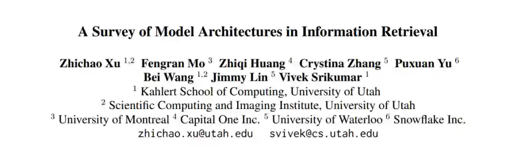 本综述研究了信息检索(IR)中模型架构的发展,重点关注两个关键方面:用于特征提取的骨干模型和用于相关性估计的端到端系统架构。本文有意将架构考虑与训练方法区分开,以便对IR系统中的结构性创新进行集中分析。我们追溯了从传统基于术语的方法到现代神经网络方法的发展,特别突出变换器(transformer)模型以及随后的大规模语言模型(LLM)所带来的影响。最后,我们讨论了新兴的挑战和未来的发展方向,包括性能和可扩展性的架构优化、多模态和多语言数据的处理,以及如何适应超越传统搜索范式的新应用领域。
