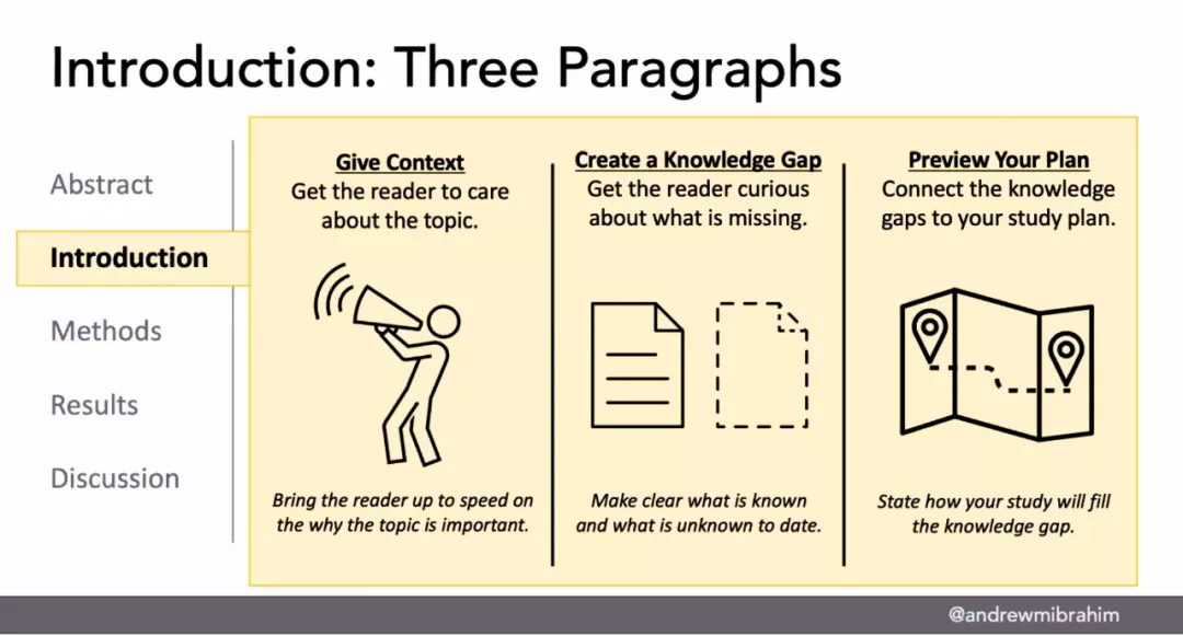 引言的目的是为问题提供背景,创造一个知识缺口,并预排你的研究计划。我们觉得用三个不同的段落更有效地做到这一点(图9.2)。