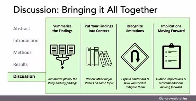讨论部分是您将前面三个部分(介绍、方法和结果)联系在一起并将它们放入主题的更广泛的上下文中的机会。在这一节中,我们通常使用5段方法,包括4个组件(图9.3)。